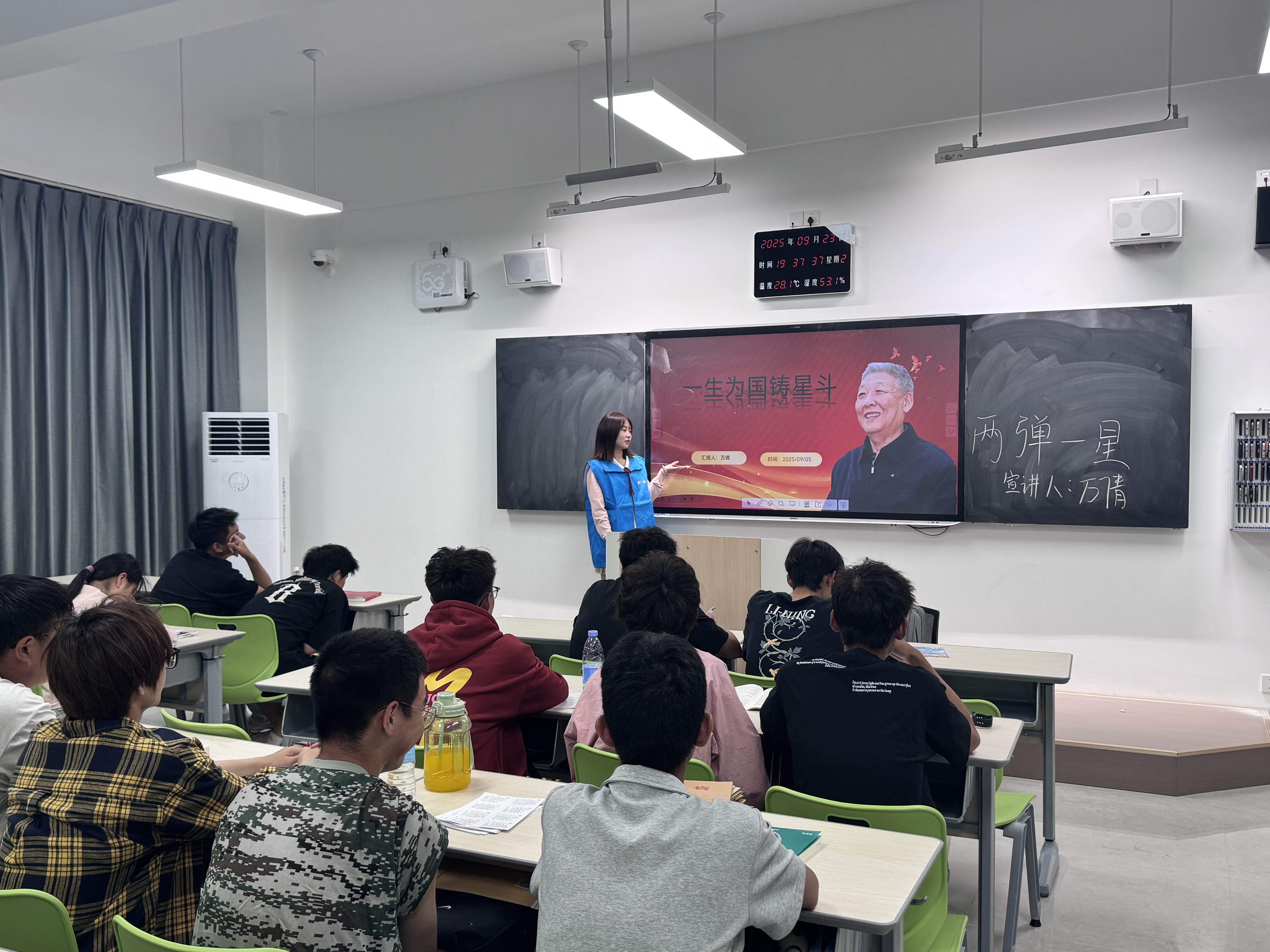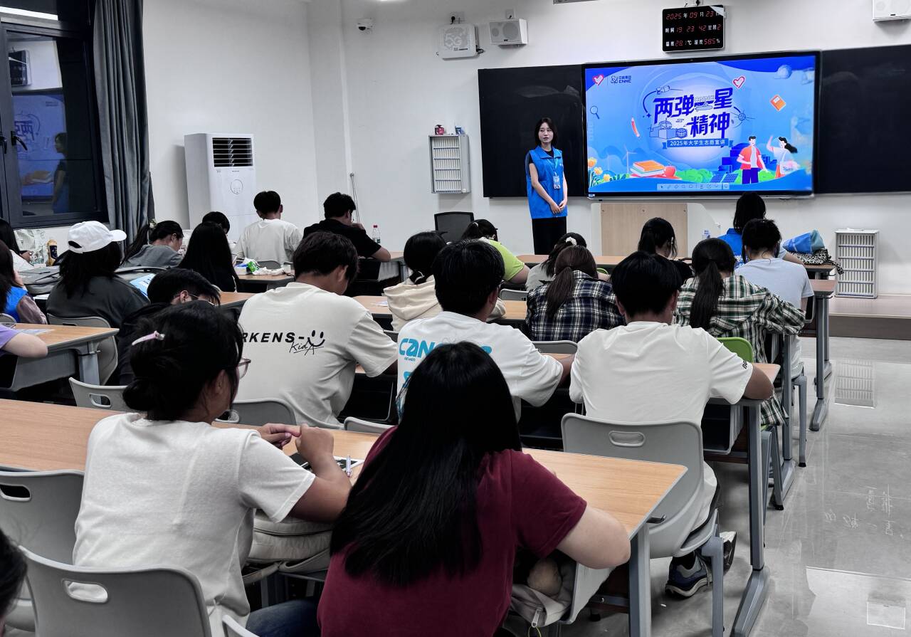 在2025级新生入学伊始,纺织服装学院以“传承红色基因,厚植家国情怀”为主线,创新将全国大学生“两弹一星”精神志愿宣讲活动与新生入学教育深度融合,为新生扣好大学生活“第一粒扣子”,打造了一堂别开生面的“大思政课”。